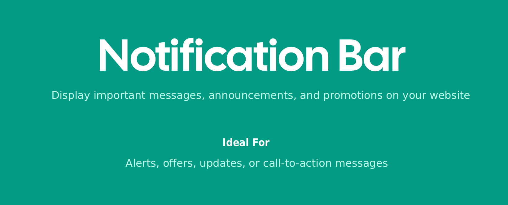 The Notification Bar module lets you display important messages, announcements, and promotions on your website. It is designed to be highly flexible, visually customizable, and easy to control, making it suitable for alerts, offers, updates, or call-to-action messages.